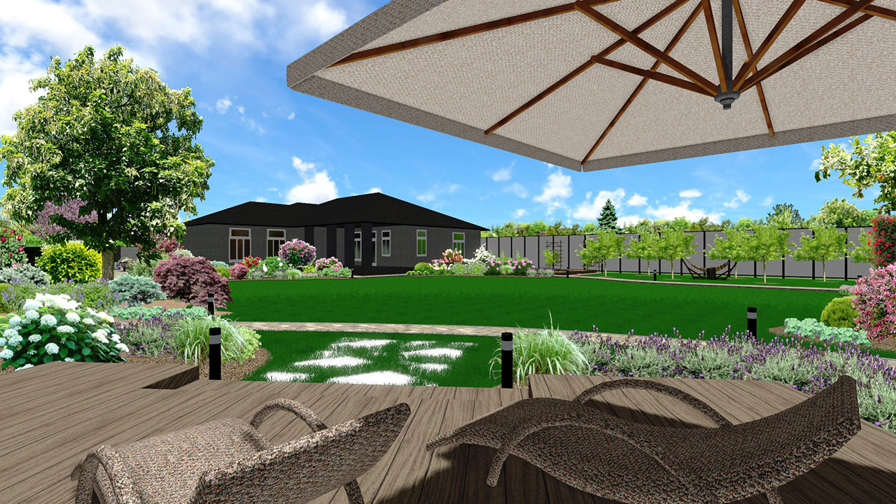 Пейзажний стиль саду було обрано невипадково, оскільки масштаб території (24 сотки) та побажання клієнта щодо природності організації саду збіглися.